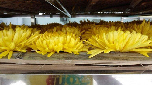 新鮮菊花含水量較高,其中花瓣部分含水量較少,組織較嫩,容易干燥,而花頭部分含水量特大,可達(dá)80%以上,且組織較老,不易失水,菊花是一種組織極不均勻的藥材。因此,遠(yuǎn)圖菊花烘干機(jī)對芘頭部分進(jìn)行強(qiáng)干燥,而對花瓣部分進(jìn)行弱干燥。烘出的菊花色澤金黃,花香濃郁,花芯不散。