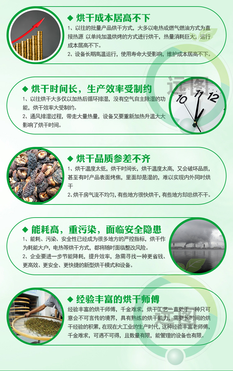 地址: 隨州市高新區(qū)鹿鶴大道27號遠(yuǎn)圖農(nóng)業(yè)機(jī)械木耳烘干時的溫度應(yīng)從35℃開始,如果溫度高,過高排濕跟不上,容易引起木耳變型。在35℃至40℃下烘干4小時后,可適當(dāng)升高到45℃至50℃在烘至五個小時,最高不要超過60℃ ,然后在45℃至50℃下烘干至干燥。整個烘干流程需要十到十四小時。由于木耳的目標(biāo)干燥度、烘干房的大小、通風(fēng)的方式等條件不一樣,因而具體的干燥工藝應(yīng)當(dāng)按照具體條件靈活。